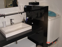 洗面台と洗濯機の間に仕切り壁を製作しました。 洗面カウンターにとても合っていて、ただの壁ですがとても存在感があります。
